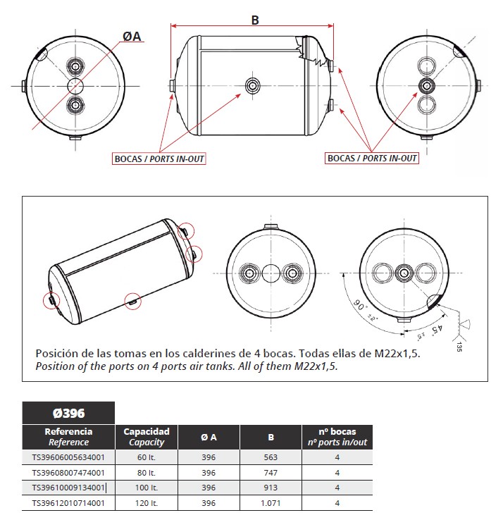 · 80 litros - Ø 396 / Longitud: 747 / 4 bocas
