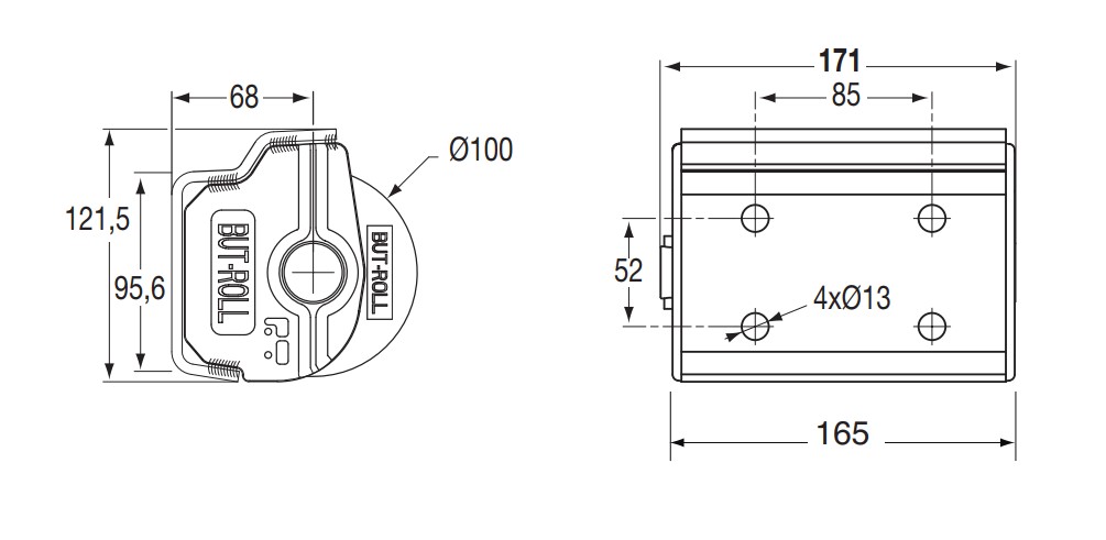 Tope de goma But-Roll: Amortiguador de impacto o defensa But-Roll H1-130 horizontal de 1 rodillo cilíndrico de goma y soporte en acero galvanizado