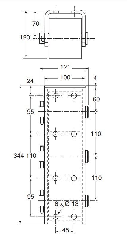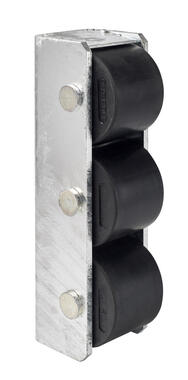 Tope de goma But-Roll: Amortiguador de impacto o defensa But-Roll V3-80 vertical de 3 rodillos cilíndricos de goma y soporte en acero galvanizado
